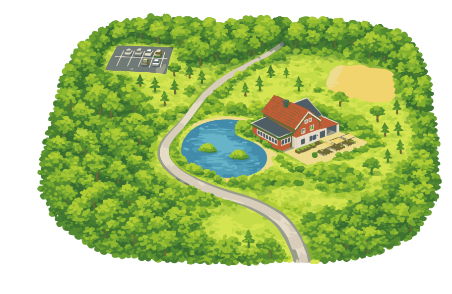 Ein besonderer Ort für besondere Momente: Mitten im Wald, umgeben von hohen Bäumen und mehreren ruhigen Teichen, liegt unsere Eventlocation – ein Ort, der sofort entschleunigt und eine Atmosphäre schafft, die man sonst nur aus Urlaubsorten kennt. Wer hier ankommt, spürt unmittelbar die Ruhe der Natur und die besondere Stimmung, die diesen Platz so einzigartig macht.